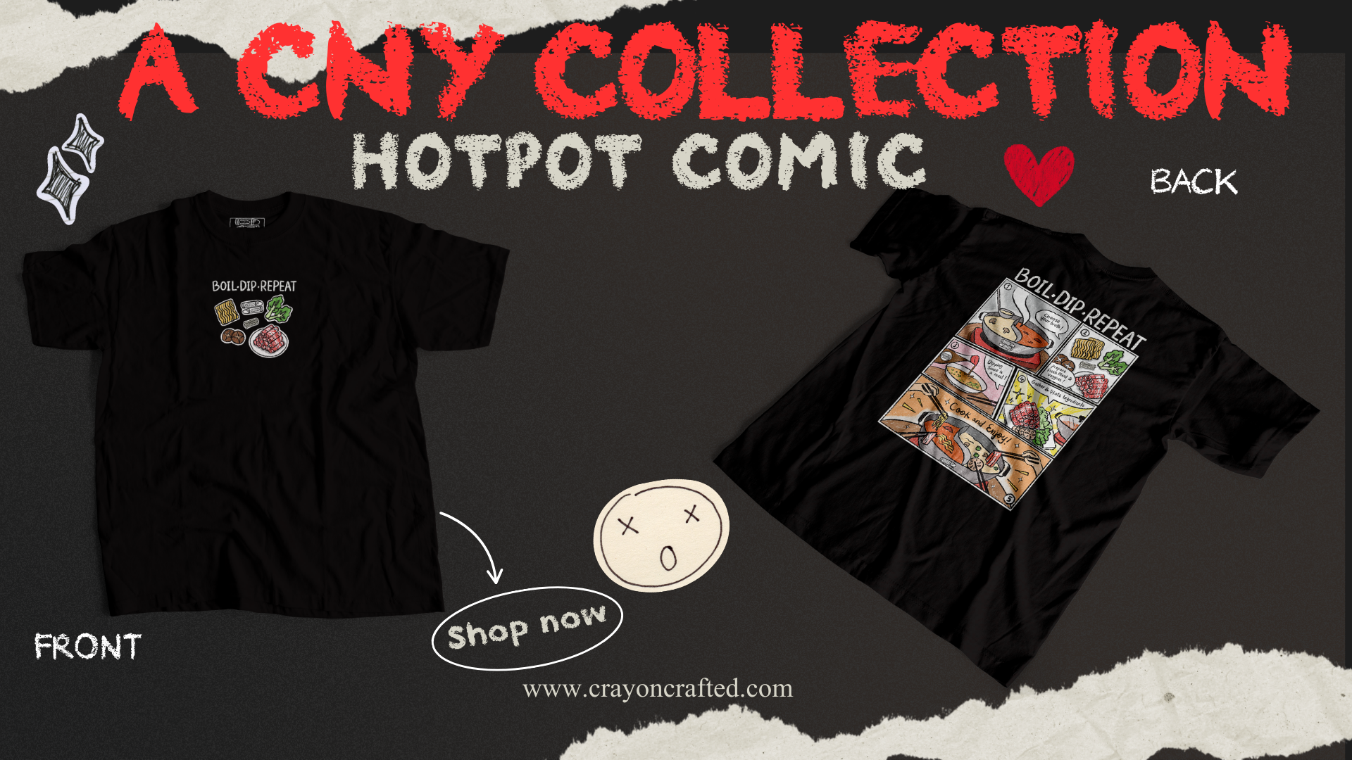 Inspired by familiar rituals, shared tables, and classic games, our Chinese New Year Collection celebrates the moments that bring everyone together. Featuring hotpot traditions, mahjong culture, and playful nods to luck, each design is illustrated in CrayonCrafted’s signature hand-drawn crayon style — reimagined with a nostalgic arcade twist.